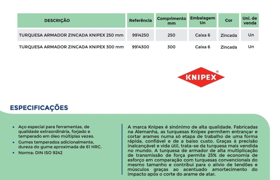 Turquesa armador Zincada - Aço especial para ferramentas, de qualidade extraordinária, forjado e temperado em óleo múltiplas vezes - Gumes temperados adicionalmente, dureza do gume aproximada de 61 HRC - Norma: DIN ISO 9242.