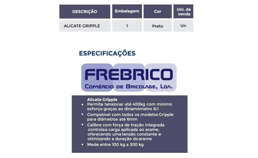 O alicate Gripple é leve, compacto e tensiona arames até 6 mm. Incorpora um dinamómetro que permite medir a tensão aplicada ao arame.