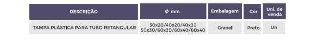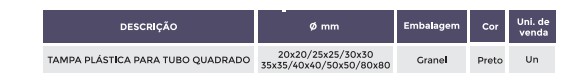 Tampas Plásticas Para Tubo Redondo, Quadrado e Retangular.