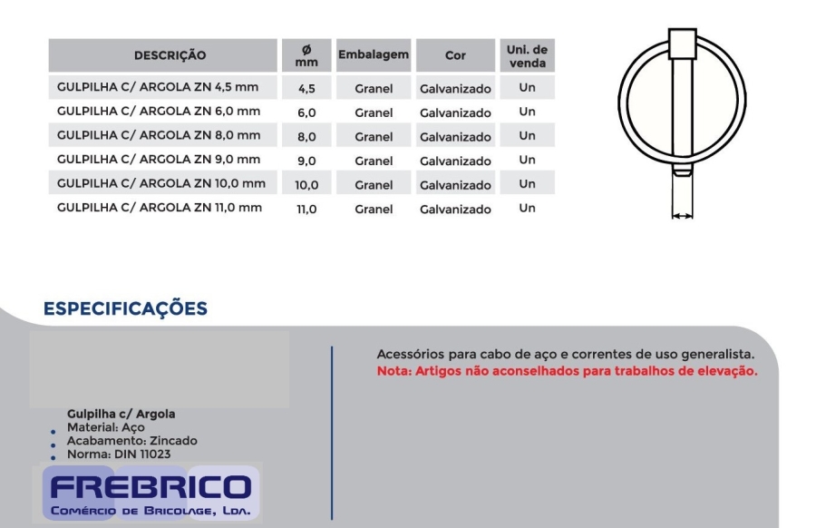 Fabricada em Aço - Acabamento Zincado - Norma: DIN 11023.